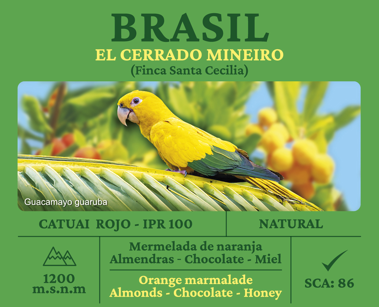 Este café de El Cerrado Mineiro (Finca Santa Cecilia) representa uno de los perfiles más clásicos y apreciados de Brasil. Su variedad Catuai Rojo IPR 100, combinada con un proceso natural, ofrece una taza dulce, limpia y sedosa.